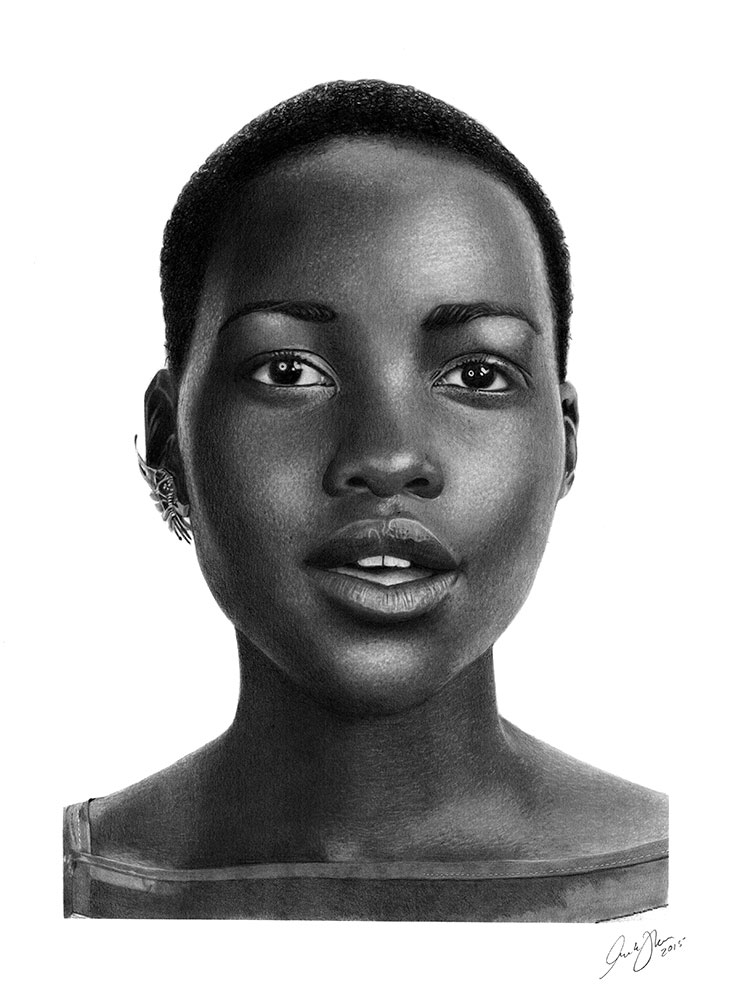 Recentemente venci um desafio internacional com o retrato realista da atriz Lupita Nyong’o.